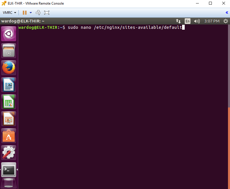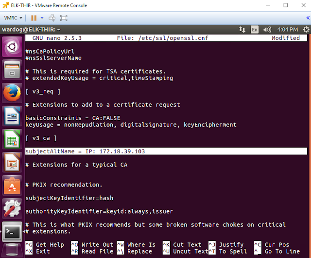 | Figure 21. Editing our kibana config file. |