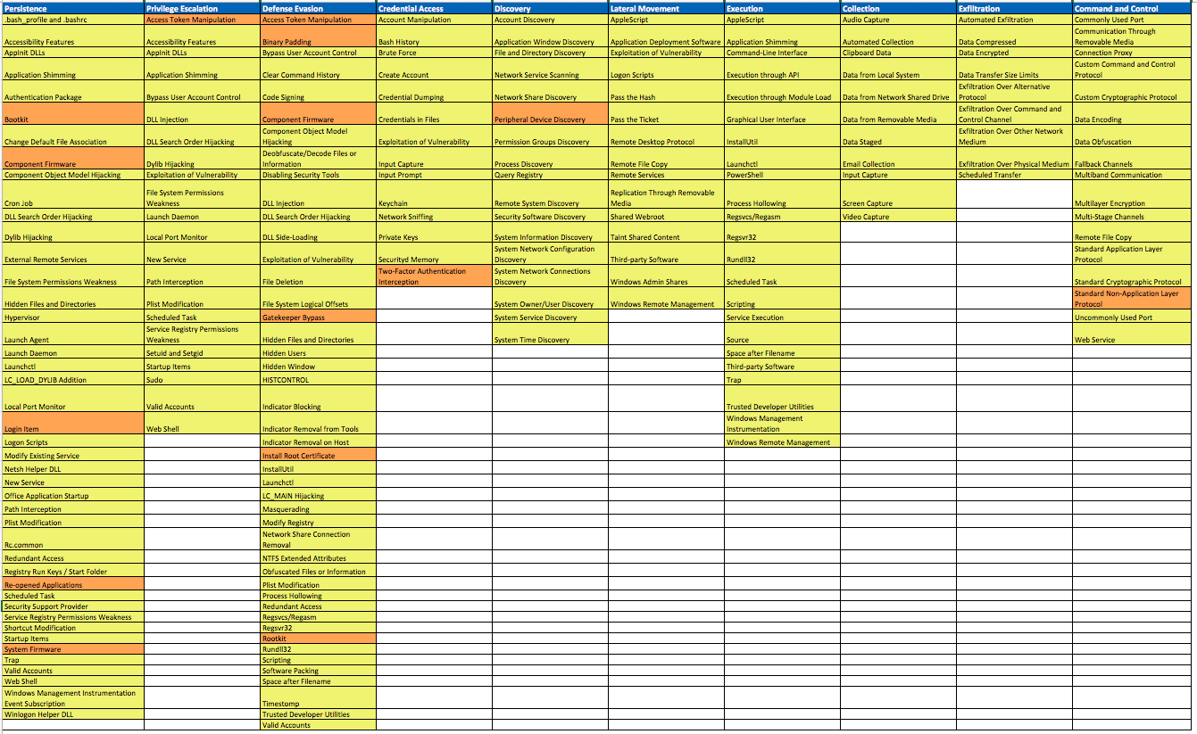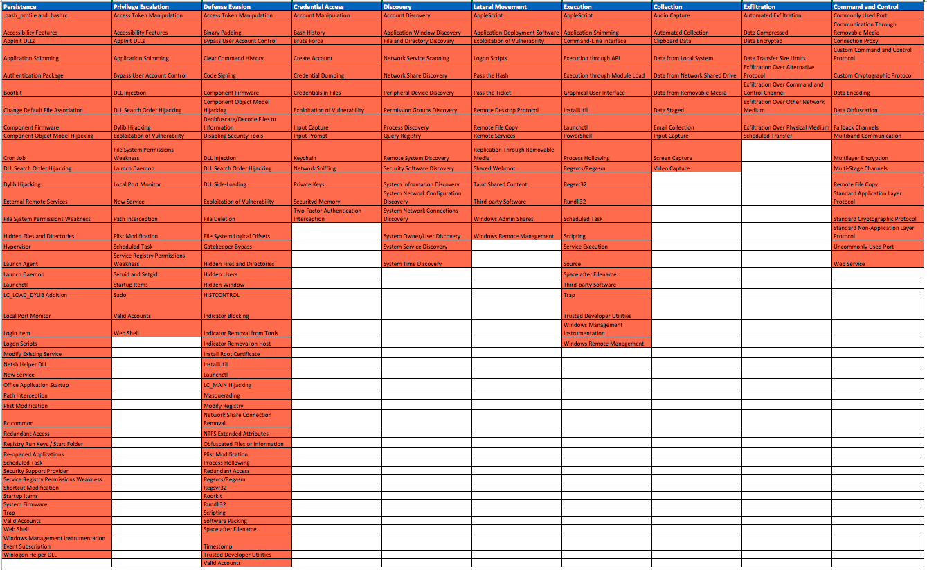 | Figure 15: Looking at the current scores across my ATT&CK Matrix. |