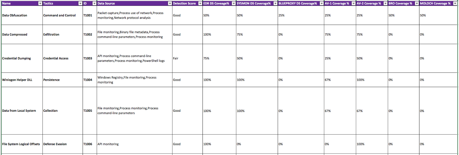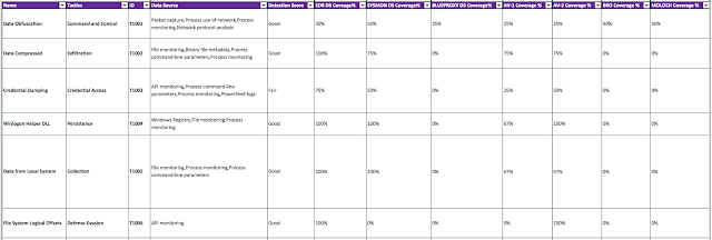 - You can see that your EDR solution looks to be doing better than your other solutions since it provides more data sources than what you other tools are capable of or configured to do so. However, you should NOT take that score as your final score when doing an inventory of your tools and asking yourself, “What tools are helping my team to hunt specific techniques?” I have seen tools being mapped to the ATT&CK Matrix in recent presentations and I don't see much value on just saying that they help because they give you the required data (my opinion).